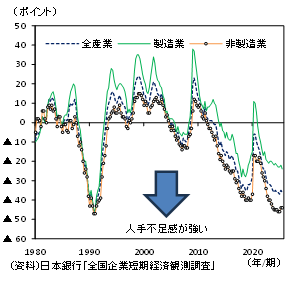 (図表1)短観・雇用人員判断D.I.(全規模)